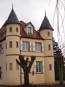 Cette demeure féodale est considérablement agrandie une première fois vers 1395 ; elle est bâtie sur un îlot entouré d’un fossé qui pouvait se remplir des eaux de l’Ill voisine au moyen d’écluses.