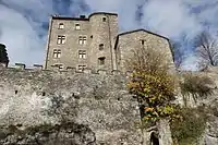Le complexe épiscopal de la Majorie, composé du Vidomnat (à gauche) et de la tour de la Majorie (au centre) | ||||