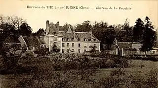 Le logis et une partie des communs furent bâtis en haut d'une colline à la fin du XVe siècle[2], la tour rectangulaire date quant à elle de la fin du XVIe siècle, pour la famille du Crochet. Vers cette même époque, René du Crochet obtenu l'autorisation d'y ériger une chapelle. Le château domine alors la vallée de l'Huisne. Le domaine est composé des bois et plusieurs exploitations agricoles sur la commune. La Prousterie constituée une châtellenie au XVIe siècle dépendante du Perche.