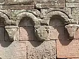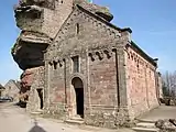 La pierre destinée à la construction a été prélevée directement sur place. Toutefois, le poudingue étant un matériau de construction assez médiocre, les bâtisseurs ont privilégié l’emploi du grès vosgien, une pierre ayant l’avantage d’être facile à tailler. La qualité de la taille est très variable selon les époques : les constructions de l’époque romane sont dans un grand appareil très soigné, tandis qu’à l’époque gothique il est fait usage d’un moyen appareil bien moins qualitatif ; le grand appareil se retrouve pendant quelque temps à la Renaissance, mais à partir du XVIIIe siècle les pierres employées des plus médiocres, étant de petites dimensions et à la taille irrégulière, bien qu’il y ait quelques blocs de qualité provenant de réemplois[3].