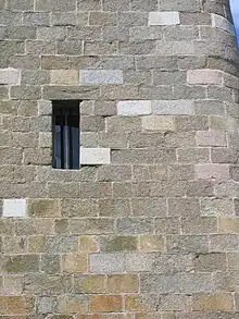 - 1690-1692 : reconstruction du front Sud (pont-levis et môle ; porte d'entrée, corps de garde et chapelle), construction du front Nord (les trois casemates à canon orientées vers le nord-ouest et magasin à poudre au premier étage) et fondations de la partie Ouest (du front nord à la tour Française). Le chantier progresse assez vite ; il est vrai que les carrières sont nombreuses dans la baie de Morlaix et que le transport de la matière première est facilité par la voie maritime. Paradoxalement, il est plus facile de construire un château en pleine mer que sur la terre ferme où les matériaux sont très difficilement acheminés, compte tenu de l'état des routes et des chemins. Le fort du Taureau est ce qu'on appelle un ouvrage polylithique[12]. De nombreux îlots et îles de la baie de Morlaix tous proches du chantier comme l'île Callot (granite rose-rougeâtre), l'île de Batz (granite gris), le Jardin du Roi (granite ocre) (aujourd'hui, île Louët) ou encore Roc'h Gored… ont fourni la matière première à la reconstruction. Ce sont les pierres situées au niveau de la mer, les « boules de granite », qui sont extraites en premier et acheminées par des chalands[13].