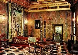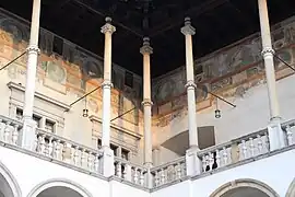 Certains éléments de décoration des salles de la résidence renaissance du Wawel peuvent être admirés encore de nos jours : des frises peintes, des plafonds en bois, des encadrements de portes sculptés. La décoration du plafond de la Salle des Députés, des têtes humaines sculptées et peintes, forme le fragment le plus original. Le trésor du château constitue la collection des tapisseries flamandes du roi Zygmunt Auguste.