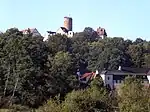 La chapelle castrale à colombages a ensuite été ajoutée à l'extérieur du rempart circulaire. Du côté est, se trouvent les restes du mur d'un grand bâtiment détruit pendant la guerre de Trente Ans, avec des écuries au sous-sol et des chambres pour femmes à l'étage supérieur. La maison habitée au nord-ouest du complexe date d'époques plus récentes. Elle était détruite en 2017.