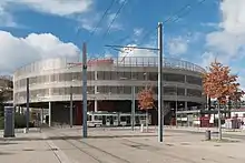 Le parcotrain : il s'agit d'un parking aérien conçu par l’architecte Patrick Chavannes qui a une forme de coquillage et permet le stationnement de 600 véhicules sur 5 niveaux. Les façades sont recouvertes d’une fine résille d’acier qui procure un effet visuel de clarté à l’intérieur de l’ouvrage. La base du parking est composée d’une boucle de retournement pour la ligne T2 du tramway.