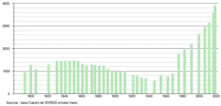 La population de la commune s'est fortement accrue à la fin du XVIIIe siècle avant de se stabiliser au milieu du XIXe siècle. À partir des années 1880, la commune a perdu de nombreux habitants, atteignant son chiffre le plus bas en 1946, où le nombre d'habitants est encore plus faible qu'en 1793. Le babyboom, la vitalité économique des Trente Glorieuses, le rattachement des communes voisines de Vouvray et Ochiaz et plus récemment la proximité avec la Suisse ont engendré une hausse sans précédent de la population; celle-ci a été multiplié par 5 en 50 ans.