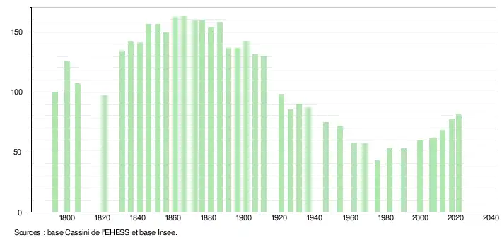 En 2021, la commune comptait 81 habitants[Note 4], en augmentation de 10,96 % par rapport à 2015 (Marne : −1,22 %, France hors Mayotte : +1,84 %).