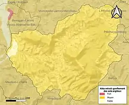 Le retrait-gonflement des sols argileux est susceptible d'engendrer des dommages importants aux bâtiments en cas d’alternance de périodes de sécheresse et de pluie[44]. 98,6 % de la superficie communale est en aléa moyen ou fort (59 % au niveau départemental et 48,5 % au niveau national)[Carte 6]. Depuis le , en application de la loi ELAN, différentes contraintes s'imposent aux vendeurs, maîtres d'ouvrages ou constructeurs de biens situés dans une zone classée en aléa moyen ou fort[Note 9],[45].