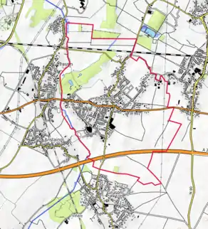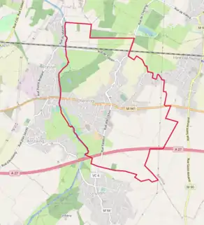 L'occupation des sols de la commune, telle qu'elle ressort de la base de données européenne d’occupation biophysique des sols Corine Land Cover (CLC), est marquée par l'importance des territoires agricoles (66,5 % en 2018), néanmoins en diminution par rapport à 1990 (69,6 %). La répartition détaillée en 2018 est la suivante : terres arables (37,3 %), prairies (29,2 %), zones urbanisées (27,5 %), forêts (5,9 %)[17]. L'évolution de l’occupation des sols de la commune et de ses infrastructures peut être observée sur les différentes représentations cartographiques du territoire : la carte de Cassini (XVIIIe siècle), la carte d'état-major (1820-1866) et les cartes ou photos aériennes de l'IGN pour la période actuelle (1950 à aujourd'hui)[Carte 1].