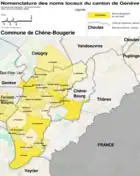 La nomenclature des lieux-dits de la commune a été établie entre 1932 et 1953 lors de la création du plan d'ensemble du canton de Genève.