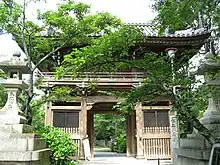 Vue du bâtiment principal du Chōgosonshi-ji en arrière-plan. | ||