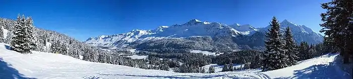 Panorama sur la chaîne de Plessur depuis l'Albula (dans la vallée : Davos)
