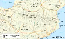 Carte des entités administratives et réseaux de transport des Pyrénées.