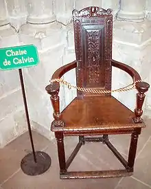 - La chaise de Jean Calvin se trouve exposée dans la cathédrale de Genève.