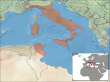 Aire de répartition de l'espèce Chalcides chalcides selon l'UICN (consulté le ).