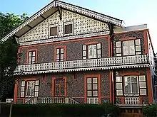 - Bardage en bois, généralement peint, souvent de couleurs vives.