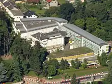 ![]() ![]() ![]() ![]() ![]() ![]() De haut en bas, de gauche à droite : vue générale, la mairie, l’église, les Thermes, le château des Comtes de Challes et le casino. |