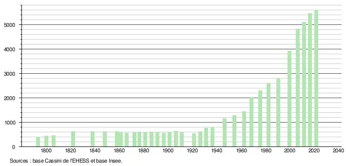 Pour la période 1971-2000, la température annuelle moyenne est de 11,3 °C, avec une amplitude thermique annuelle de 19,2 °C. Le cumul annuel moyen de précipitations est de 1 265 mm, avec 9,6 jours de précipitations en janvier et 8,4 jours en juillet[8]. Pour la période 1991-2020, la température moyenne annuelle observée sur la station météorologique installée sur la commune est de 11,8 °C et le cumul annuel moyen de précipitations est de 1 147,6 mm[10],[11]. Pour l'avenir, les paramètres climatiques de la commune estimés pour 2050 selon différents scénarios d'émission de gaz à effet de serre sont consultables sur un site dédié publié par Météo-France en novembre 2022[12].