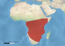Cette espèce se rencontre en Afrique du Sud, en Swaziland, en Botswana, au Zimbabwe, en Angola, au Zimbabwe, en Zambie, au Malawi , au Mozambique, en Tanzanie, au Burundi, au Kenya, en Somalie, en Éthiopie, au Congo-Kinshasa, au Congo-Brazzaville, au Gabon, en Guinée équatoriale, au Cameroun, au Nigeria et au Togo[2].