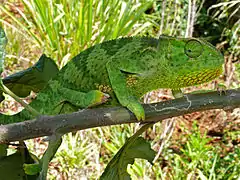 Chamaeleo dilepis, le Caméléon Bilobé[1], est une espèce de sauriens de la famille des Chamaeleonidae[2].