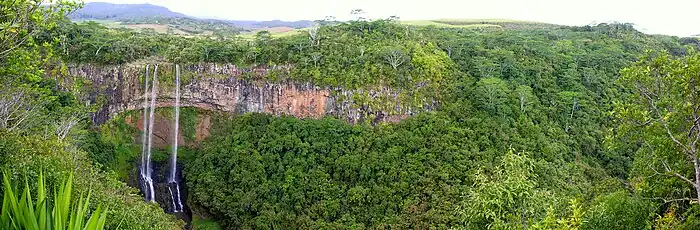 Vue de la plaine de Chamarel et de la cascade. | |||