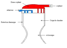 Schéma d'une chambre de combustion de moteur-fusée.