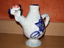 Le phénomène qui le rend « magique » est le fait qu'il est possible d'introduire un liquide par deux ouvertures sur le haut de la bosse et à la base de la poterie ; celui-ci s'échappe ensuite par le bec, représentée par le cou sinueux coiffée par la tête et une grande bouche, comme dans une théière ordinaire.