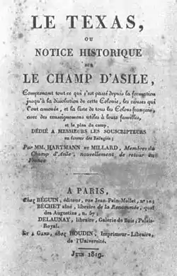 - (en) « French Exiles in Texas 1818, The Colony « Le Champ D'Asile » by colonists Hartmann & Millard, published June 1819 », sur tamu.edu (consulté le ).