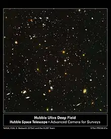 Le champ ultra-profond de Hubble, ou HUDF (de l'anglais Hubble Ultra Deep Field), est une photographie d'une petite partie de la région de l'hémisphère sud de la sphère céleste située dans la constellation du Fourneau. La photographie est le résultat d'une accumulation de données recueillies par le télescope spatial Hubble entre le et le et totalisant près de 1 million de secondes de temps d'exposition réparties en séquences typiques de 1 200 secondes[1].