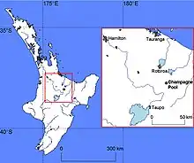 Champagne Pool est un bassin naturel d’eau chaude de la zone thermale de Wai-O-Tapu dans la région du Waikato en Nouvelle-Zélande. La source chaude est située à environ 30 km au sud-est de Rotorua et 50 km au nord est de Taupo. Le nom de Champagne Pool provient des abondantes émanations de dioxyde de carbone (CO2) qui rappellent les bulles dans un verre de Champagne. La source chaude s'est formée il y a 900 ans à la suite d'une éruption hydrothermale[1], ce qui en fait, à l'échelle géologique, un système relativement jeune. Son cratère fait environ 65 mètres de diamètre et atteint une profondeur de l'ordre de 62 mètres pour un volume estimé à 50 000 m3 [2].
