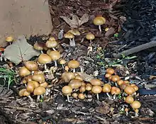 La composition des champignons magiques varie d'un genre à l'autre et d'une espèce à l'autre[24]. Son composant principal est la psilocybine[25] qui est convertie en psilocine pour produire un effet psychoactif. En outre, la psilocine, la norpsilocine, la baeocystine, la norbaeocystine et l'aeruginascine peuvent également être présentes, ce qui peut modifier les effets des champignons magiques[24]. Certains champignons produisent des β-carbolines qui inhibent la monoamine oxydase, une enzyme qui décompose les alcaloïdes de tryptamine. Ils se produisent dans différents genres, tels que Psilocybe[26], Cyclocybe[27] et Hygrophorus[28]. L'harmine, l'harmane, le norharmane et une gamme d'autres β-carbolines dérivées du L-tryptophane ont été découverts chez les espèces de Psilocybe.