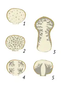 Chez les Agaricales, les formes gastéroïdes se sont développées à de multiples reprises et on évolué aussi bien à partir des groupes mycorhiziens que des groupes saprotrophes[6].