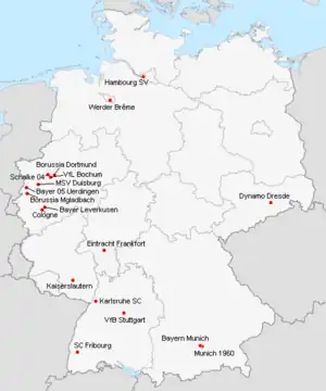 | Borussia Mönchengladbach | Bökelbergstadion | 34 500 | Mönchengladbach |