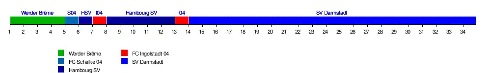 | Hoffenheim | 8 | 13 | 10 | 11 | 9 | 7 | 6 | 4 | 3 | 3 | 5 | 6 | 4 | 4 | 3 | 5 | 3 | 5 | 5 | 5 | 4 | 4 | 4 | 4 | 4 | 3 | 3 | 3 | 3 | 4 | 4 | 4 | 4 | 4 | ||