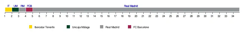 | Unicaja Málaga | 4 | 1 | 7 | 4 | 7 | 5 | 7 | 7 | 8 | 8 | 8 | 9 | 9 | 8 | 7 | 5 | 5 | 4 | 4 | 5 | 5 | 5 | 6 | 7 | 8 | 5 | 5 | 5 | 5 | 5 | 6 | 6 | 6 | 7 | 32 | |
