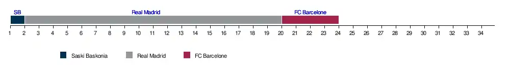 | Real Madrid | 2e | 22 - 6 (79%) | Annulé - Pandémie de Covid-19 | 22 - 6 (79%) | |