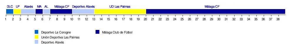 | R. Sociedad | 3 | 1 | 2 | 3 | 6 | 8 | 8 | 7 | 9 | 9 | 7 | 7 | 7 | 9 | 10 | 11 | 9 | 12 | 15 | 15 | 15 | 14 | 14 | 12 | 14 | 15 | 12 | 14 | 15 | 15 | 13 | 11 | 11 | 11 | 10 | 11 | 10 | 12 | 1 | 0 |