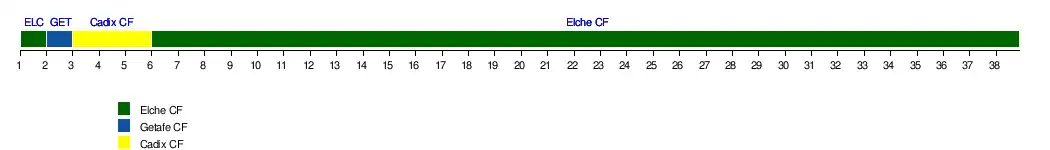 | Elche CF | 1-1 | 1-4 | 1-0 | 0-4 | 2-3 | 1-1 | 0-1 | 0-1 | 0-1 | 1-2 | 1-1 | 1-1 | 4-0 | 0-3 | 0-1 | 1-1 | 0-2 | 1-1 | 3-1 | |
