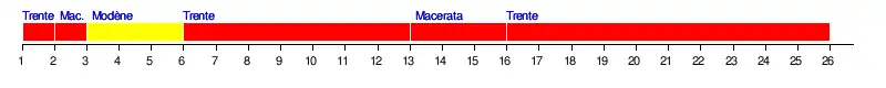 | Résultats (dom.\ext.) | BEL | CON | LAT | MAC | MOD | MON | PAD | PLA | RAV | ROM | STG | TRE | VÉR | VIV |