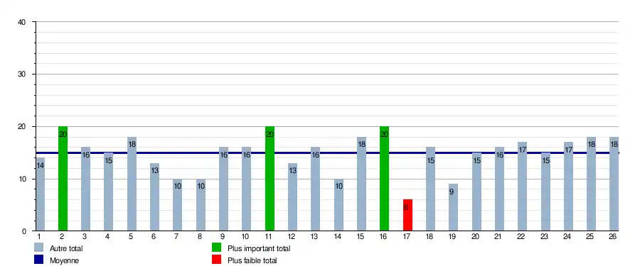 | Journées → | 1 | 2 | 3 | 4 | 5 | 6 | 7 | 8 | 9 | 10 | 11 | 12 | 13 | 14 | 15 | 16 | 17 | 18 | 19 | 20 | 21 | 22 | 23 | 24 | 25 | 26 | En tête | Relégable |