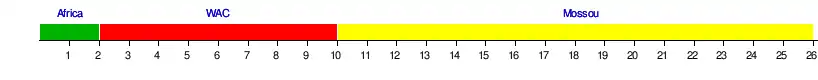 | WAC | 13 | 13 | 14 | 14 | 14 | 14 | 14 | 14 | 14 | 14 | 13 | 13 | 13 | 13 | 13 | 13 | 13 | 12 | 9 | 9 | 7 | 10 | 11 | 10 | 9 | 9 | 17 |