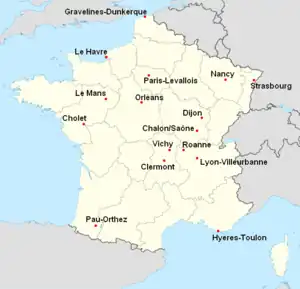 | Résultats (dom.\ext.) | CHA | CHO | CLE | DIJ | GRA | HYÈ | LEH | LEM | LYO | NAN | ORL | PAR | PAU | ROA | STR | VIC |