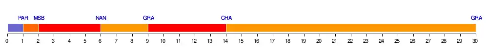 | Résultats (dom.\ext.) | CHA | CHO | DIJ | GRA | HYÈ | LEH | LEM | LYO | NCY | NRE | ORL | PAR | PAU | POI | ROA | STR |