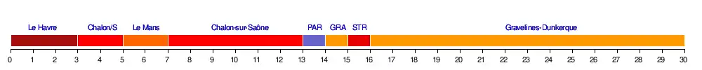 | Chalon-sur-Saône | 9 | 7 | 2 | 1 | 1 | 3 | 3 | 1 | 1 | 1 | 1 | 1 | 1 | 2 | 6 | 4 | 3 | 4 | 3 | 3 | 3 | 3 | 3 | 3 | 3 | 3 | 2 | 2 | 3 | 4 | 8 | 0 |