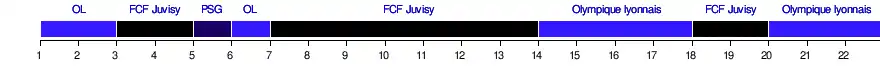 | Olympique lyonnais | 1 | 1 | 3 | 3 | 2 | 1 | 2 | 2 | 2 | 2 | 2 | 2 | 2 | 1 | 1 | 1 | 1 | 2 | 3 | 1 | 1 | 1 |