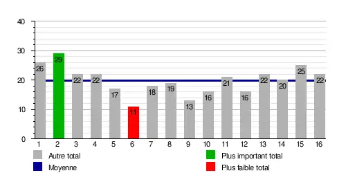 Ce graphique représente le nombre de buts marqués lors de chaque journée[7].