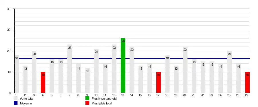 | Résultats (▼dom., ►ext.) | EFC | EPO | GIB | GLA | LIN | LGI | LYN | MAN | MCA | SJO | EFC | EPO | GIB | GLA | LIN | LGI | LYN | MAN | MCA | SJO |