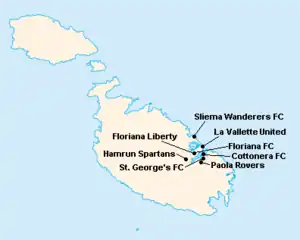 L'île de Malte étant relativement petite, les clubs évoluent tous au stade National Ta'Qali (17 400 places). Certains cependant ont leur propre enceinte qu'ils peuvent éventuellement utiliser.