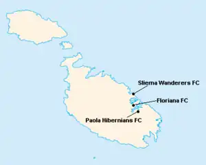 L'île de Malte étant relativement petite, les clubs évoluent tous au stade National Ta'Qali (17 400 places). Certain cependant ont leur propre enceinte qu'ils peuvent éventuellement utiliser.