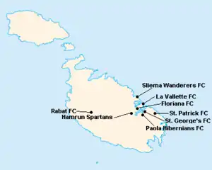 L'île de Malte étant relativement petite, les clubs évoluent tous au stade National Ta'Qali (17 400 places). Certain cependant ont leur propre enceinte qu'ils peuvent éventuellement utiliser.