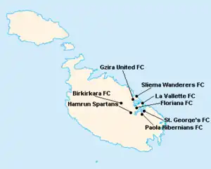 L'île de Malte étant relativement petite, les clubs évoluent tous au stade National Ta'Qali (17 400 places). Certain cependant ont leur propre enceinte qu'ils peuvent éventuellement utiliser.